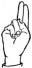 На ћирилици написано ЕЛЕНА КОМАРНИЧКИ састоји се из 15 слова [?]. Исписано ћириличном једноручном азбуком за глувонеме: